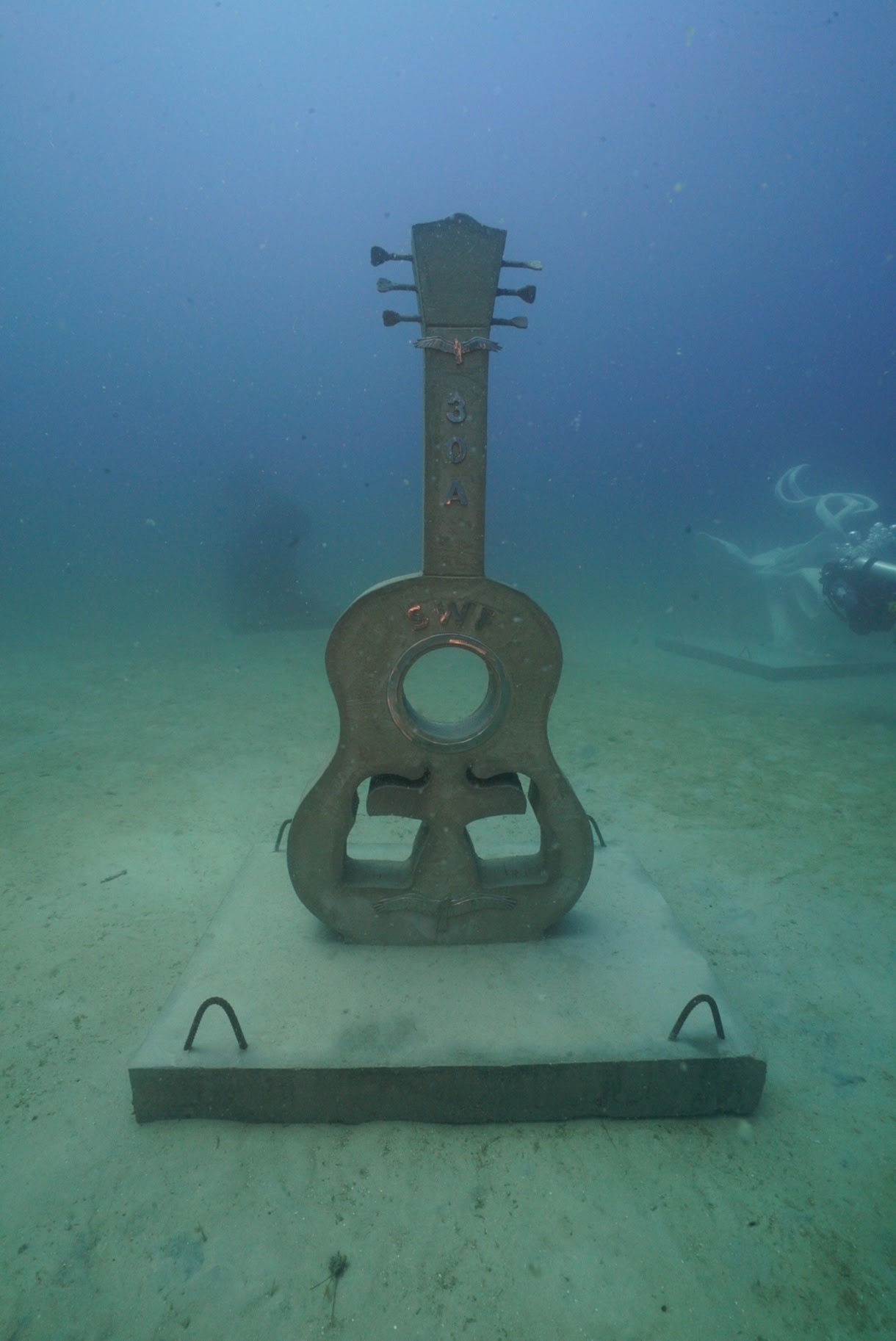 With support from Visit South Walton, Walter Marine/The Reefmaker, and the Florida Department of State; Division of Arts and Culture, the sculptures were deployed with SWARA’s existing USACOA and FDEP permitted artificial reef project that includes nine nearshore reefs located within one nautical mile of the shore in 58 feet of water. This installation joins the 25 sculptures previously deployed on a one-acre permit patch of seabed off Grayton Beach State Park, expanding the nation’s first permanent underwater museum to a total of 34 sculptures. The UMA patch will continue to be filled with several new sculptures annually.